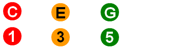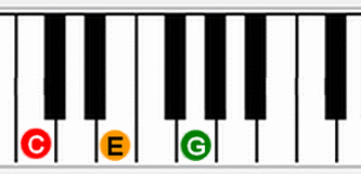 Die Töne der C-Dur Tonleiter sind: Wir nehmen nur den 1., den 3. und den 5. Ton heraus. Der Dreiklang besteht somit aus den Tönen C E und G.