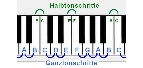 Klavier: Ganztonschritt und Halbtonschritt