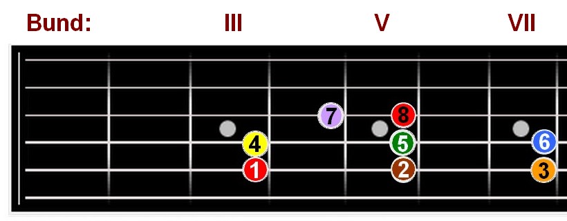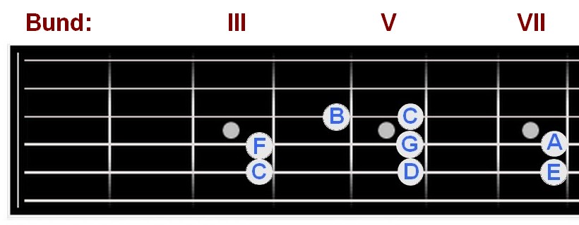 Hier möchte ich dir noch eine weitere Möglichkeit zeigen, wie man die C-Dur Tonleiter spielen kann. Im Laufe der Zeit wirst du noch weitere Möglichkeiten entdecken, wo man auf der Gitarre Tonleitern und Akkorde spielen kann. Auch du wirst dich irgendwann am Griffbrett zurechtfinden. Es dauert aber eine Weile, das ist ganz normal!